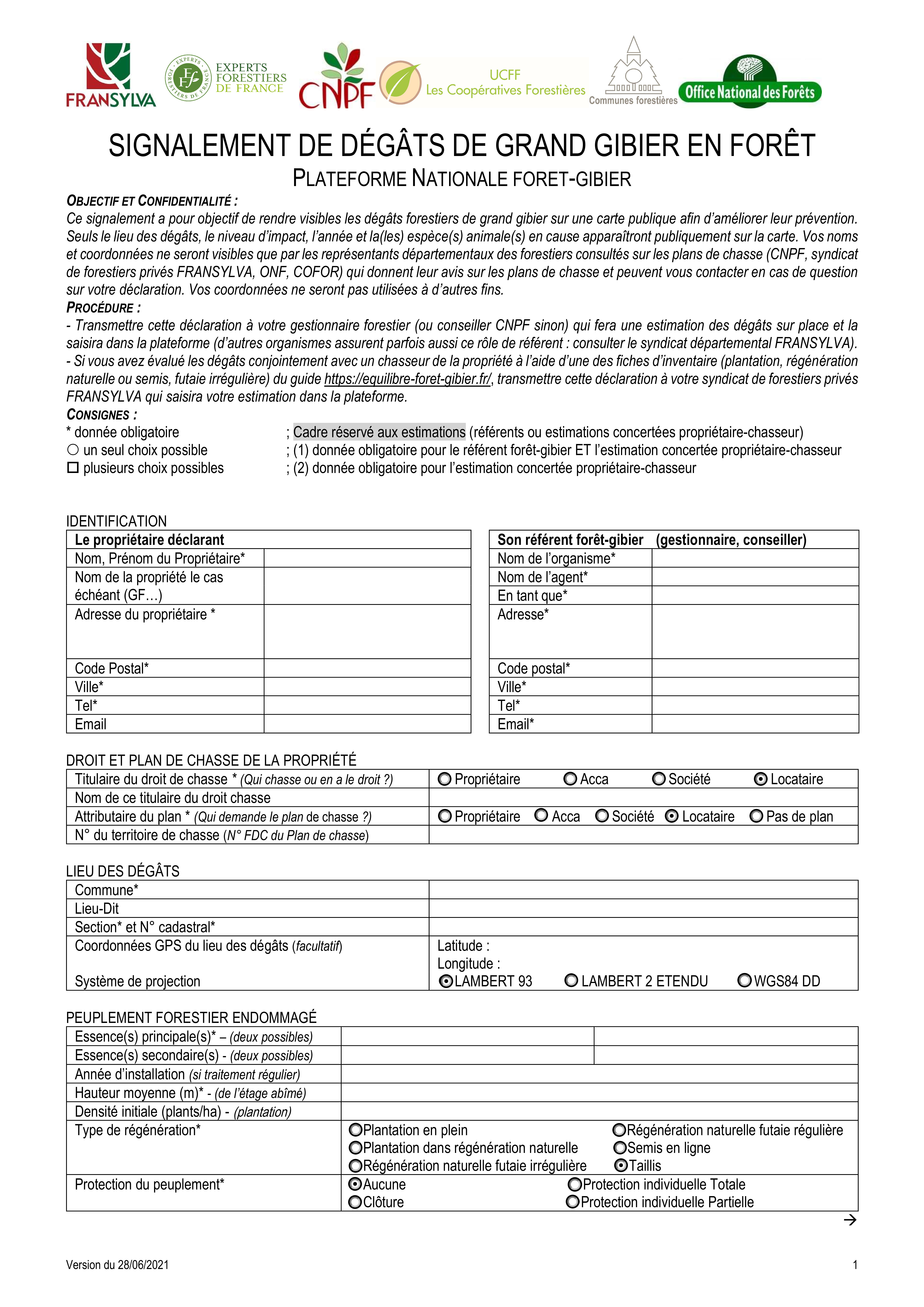 Formulaire de signalement dégâts de gibier